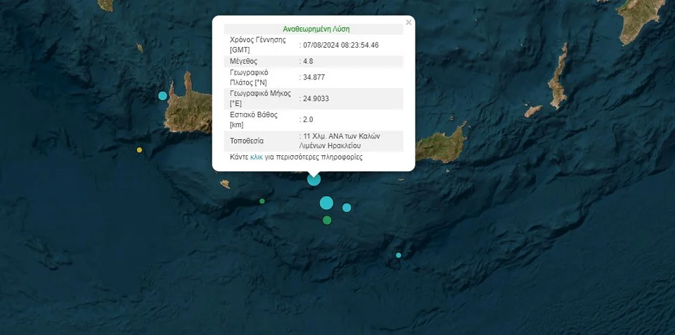 Δύο σεισμοί 4,8 και 4,1 Ρίχτερ σημειώθηκαν το πρωί της Τρίτης στα νότια της Κρήτης, μέσα σε ένα λεπτό.