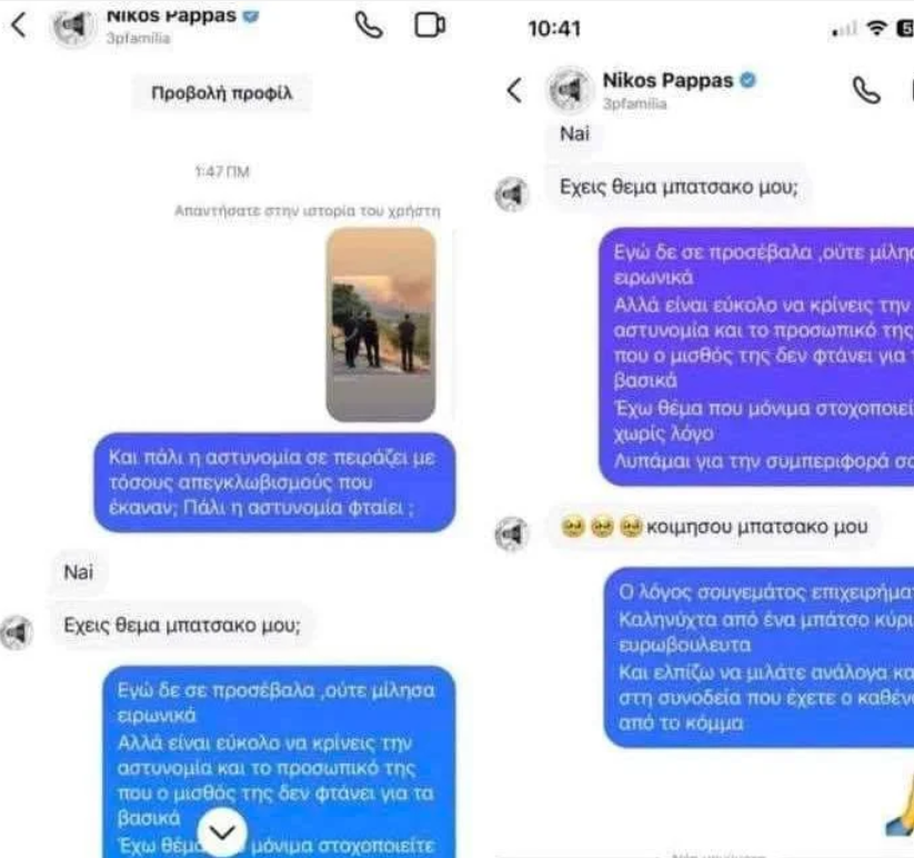 Ο οποιοσδήποτε υποτιμητικός χαρακτηρισμός για τους αστυνομικούς δεν μας αγγίζει . Τουναντίον ίσως, να αποδεικνύει ότι κάνουμε καλά τη δουλειά μας , αφού η ισχνή μειοψηφία των εμμονικών συνεχίζει να μας εξυβρίζει. Το παράλογο είναι ότι ο υβριστής, ευρωβουλευτής κ.Νίκος ΠΑΠΠΑΣ, έπρεπε να εκπροσωπεί το λαό , λόγω της θέσης και της ιδιότητας του, και να μη εκφράζεται με υβριστικούς, ρατσιστικούς και υποτιμητικούς χαρακτηρισμούς για τους μαχόμενους αστυνομικούς.