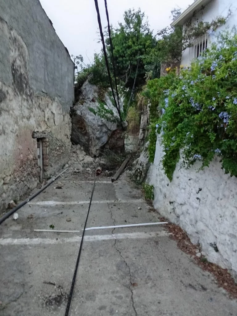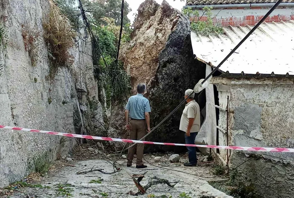 Ενας τεράστιος βράχος αποκολλήθηκε και έπεσε στο χωριό Άνω Γαρούνα της Κέρκυρας.