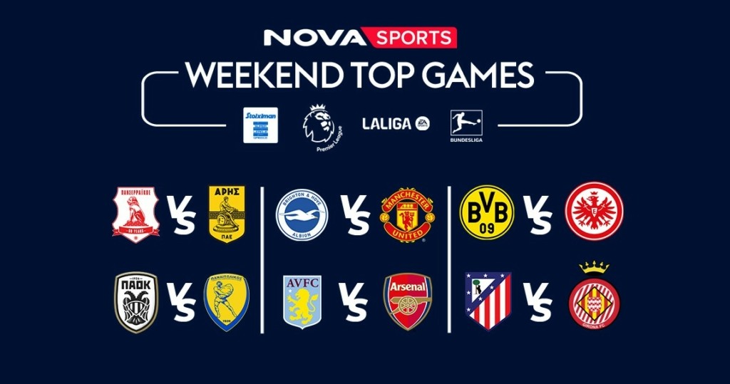 Οι συνδρομητές της Nova από την Παρασκευή 23 Αυγούστου θα έχουν πρόσβαση σε ένα ασυναγώνιστο μπουκέτο αθλητικού περιεχομένου που περιλαμβάνει όλα τα αθλητικά γεγονότα των Novasports και Cosmote Sport – όλα στην πλατφόρμα EON της Nova! Έτσι από αυτή την εβδομάδα οι συνδρομητές της Nova θα έχουν την ευκαιρία να απολαύσουν πανδαισία απίστευτου αθλητικού θεάματος με όλους τους αγώνες της Stoiximan Super League (μέσω των Novasports και Cosmote Sport), Premier League, LaLiga, Bundesliga, Serie A και συναρπαστικές αναμετρήσεις από τα πρωταθλήματα Eredivisie, Jupiler Pro League, Liga Portugal Betclic, William Hill Scottish Premiership, 2.Bundesliga, LaLiga2 κ.α.