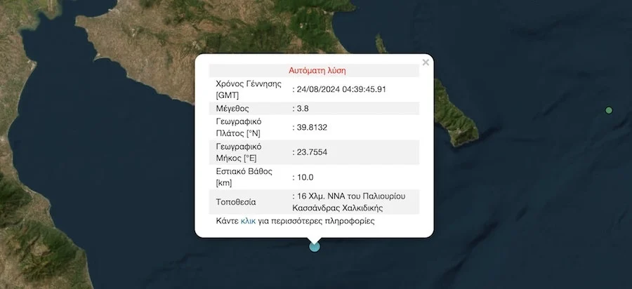 Το εστιακό βάθος του εν λόγω σεισμού στη Χαλκιδική υπολογίστηκε σε μόλις 10 χιλιόμετρα.