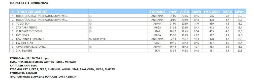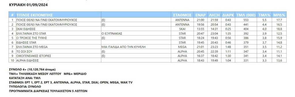 Με πρωτιά στην τηλεθέαση «αποχαιρέτησε» ο Alpha τον Αύγουστο, με πρωτιά άρχισε το Σεπτέμβριο ο Σκάι