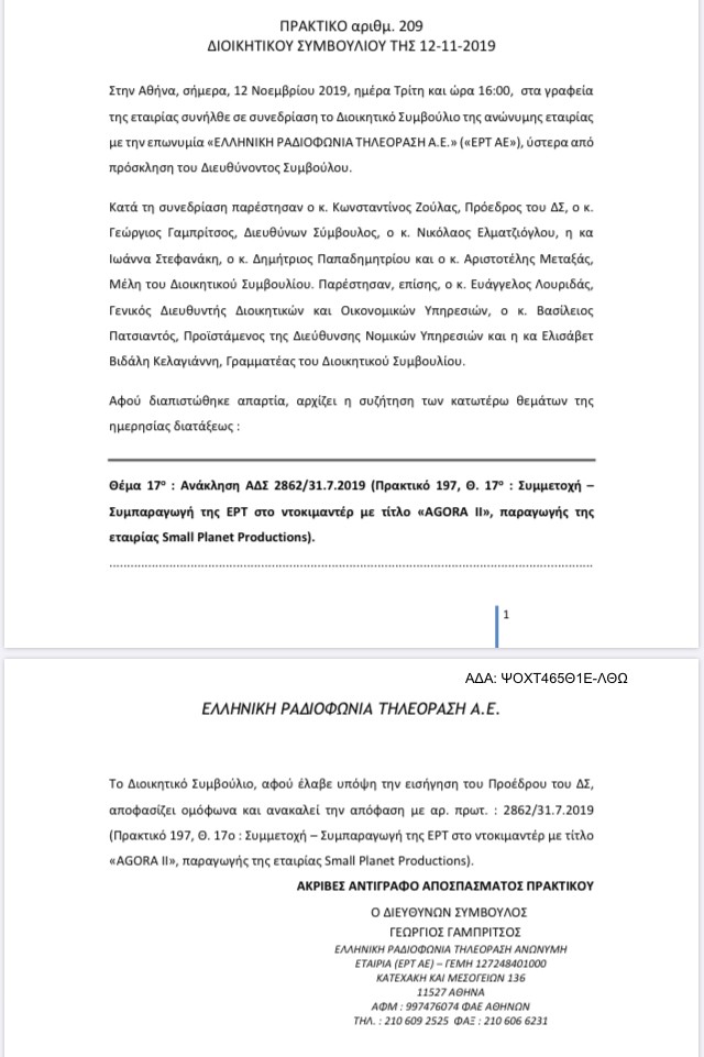 Η ΕΡΤ με εισήγηση του προέδρου της Κωνσταντίνου Ζούλα το Νοέμβριο του 2019 ανακάλεσε προηγούμενη απόφασή της και απέσυρε τη συμμετοχή της στην παραγωγή της ταινίας του Γιώργου Αυγερόπουλου, «Agora II-Δεσμώτες» με θέμα την οικονομική κρίση, θέτοντας θεμελιώδη ερωτήματα για το μέλλον της Ελλάδας του αλλά και της Ευρώπης.