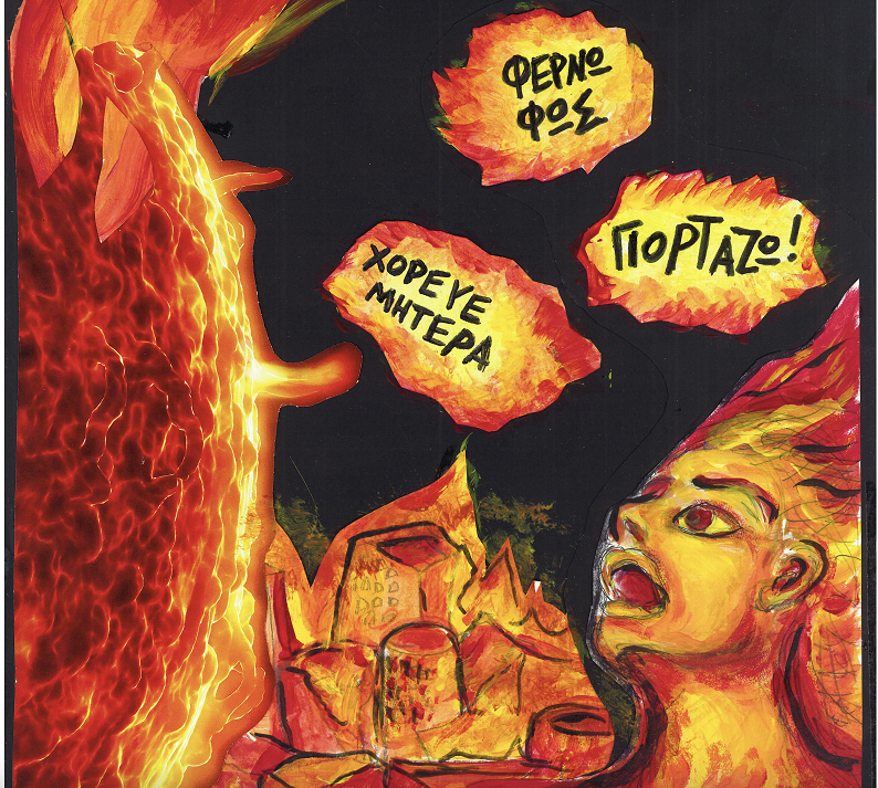Η έκθεση κόμικς πραγματοποιείται στο πλαίσιο του προγράμματος «Αρχαίο Δράμα: Μεταξύ Τραγωδίας και Τρόμου», που διοργανώνεται από το Ιδρυμα Μιχάλης Κακογιάννης, σε συνεργασία με το Πανεπιστήμιο McGill του Καναδά και κορυφαία πανεπιστήμια του κόσμου, όπως τo British Columbia, Berkley, University of California Santa Cruz κ.α