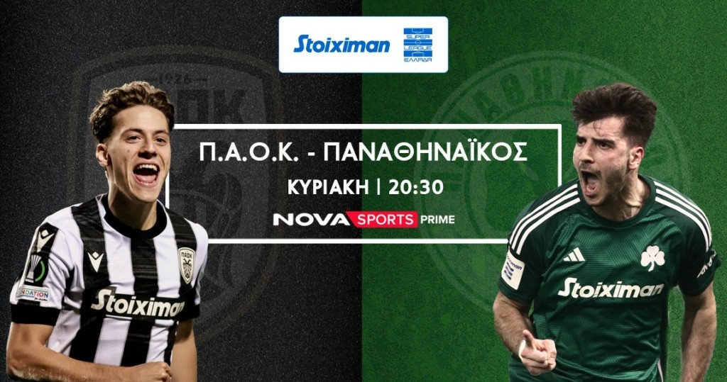 20:30 Stoiximan Super League: ΠΑΟΚ-Παναθηναϊκός Novasports Prime σε περιγραφή του Γιάννη Πάγκου και ρεπορτάζ των Κωστή Μπότσαρη και Γιώργου Αργυρόγλου