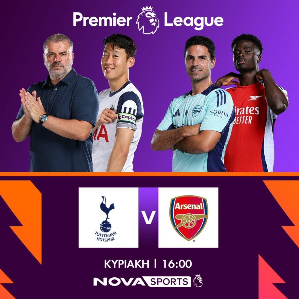 16:00 Premier League: Τότεναμ-Άρσεναλ Novasports Premier League σε περιγραφή του Χρήστου Σωτηρακόπουλου