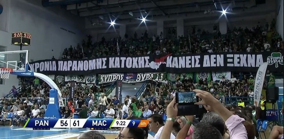 Συγκεκριμένα, κατά τη διάρκεια της φιλικής αναμέτρησης στο πλαίσιο του τουρνουά «Νεόφυτος Χανδριώτης», υψώθηκε στις εξέδρες γιγαντοπανό που έγραφε: «50 χρόνια παράνομης κατοχής, κανείς δεν ξεχνά».