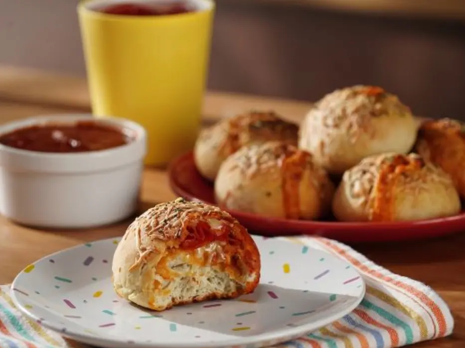 6. Ψήστε στους 180° C για 12 λεπτά. Σερβίρετε τις μπόμπες πίτσας σε πιατέλα και συνοδέψτε με επιπλέον σάλτσα ντομάτας.