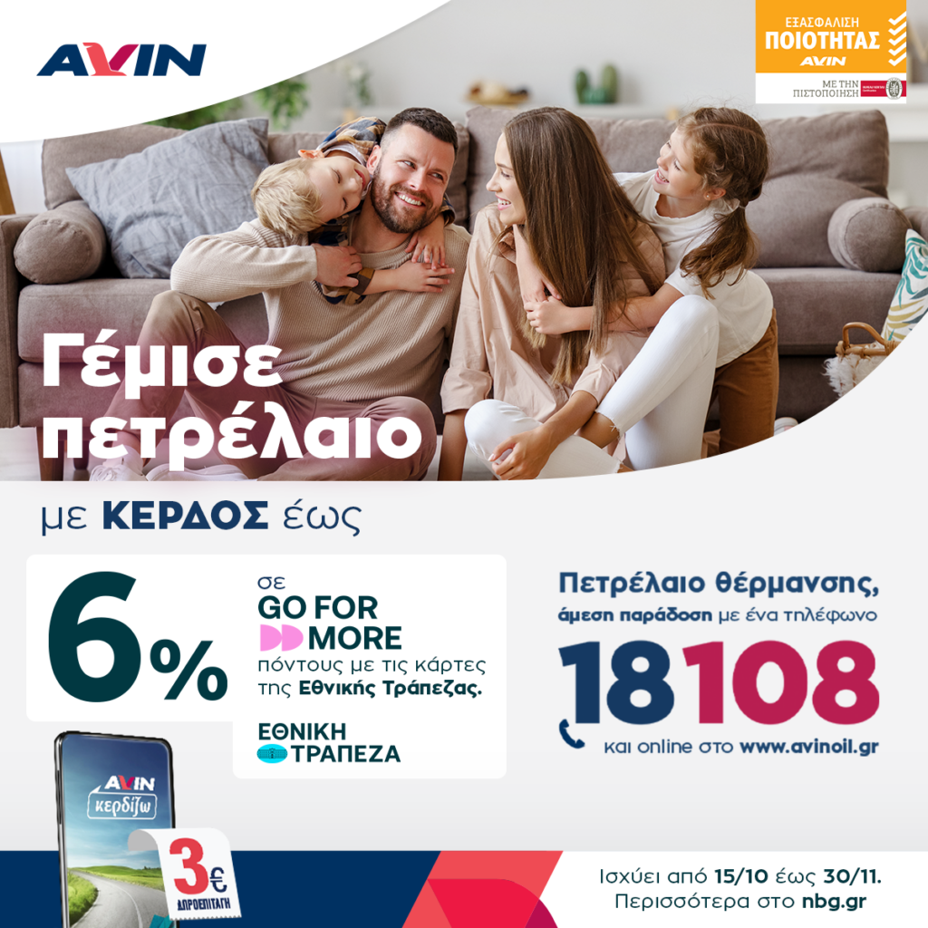 Παράλληλα, τα μέλη του προγράμματος επιβράβευσης AVIN Κερδίζω έχουν 0,5 πόντους ανά λίτρο πετρελαίου θέρμανσης, κερδίζοντας πολλαπλές δωροεπιταγές αξίας 3 ευρώ για εξαργύρωση στα πρατήρια της AVIN.