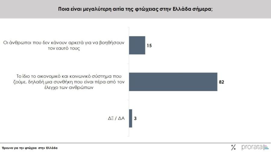 Το οικονομικό και κοινωνικό σύστημα «κατηγορούν» οι πολίτες για το πρόβλημα της φτώχειας στην Ελλάδα, όπως προέκυψε μέσα από τα ευρήματα της δημοσκοπικής έρευνας που διεξάγαγε η Prorata, με αφορμή την Παγκόσμια Ημέρα για την εξάλειψη της φτώχειας.