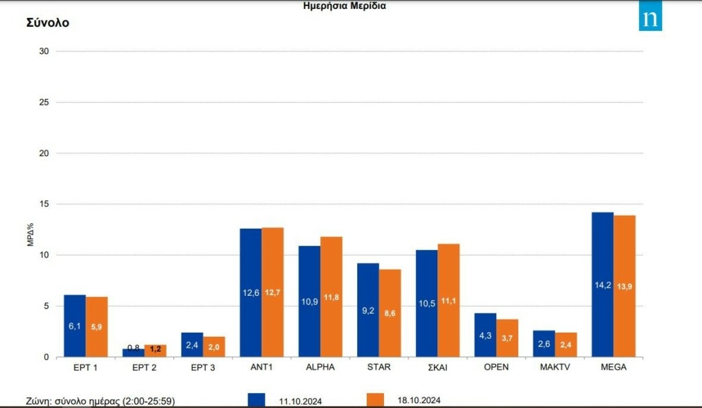 ΜAK TV και ΕΡΤ3 είχαν μερίδια 2,4% και 2% αντιστοίχως, με μικροαπώλειες σε σχέση με την προηγούμενη ημέρα.