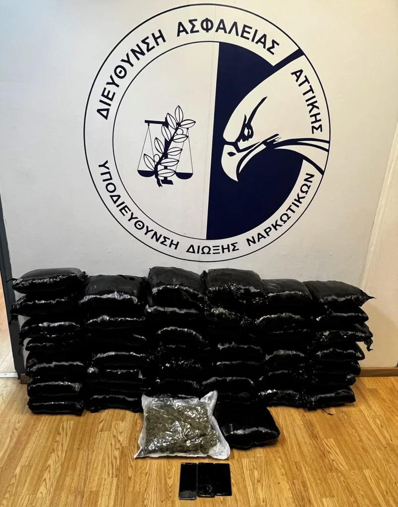 Από την έρευνα που πραγματοποιήθηκε βρέθηκαν και κατασχέθηκαν, εντός του οχήματος, 3 κούτες, οι οποίες περιείχαν 43 νάιλον συσκευασίες με ακατέργαστη κάνναβη, συνολικού μεικτού βάρους 47 κιλών, με σκοπό την περαιτέρω διακίνηση σε τρίτα άτομα, καθώς και 3 συσκευές κινητής τηλεφωνίας.