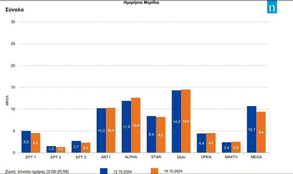 Την Κυριακή καταγράφηκε από τη Nielsen, σκληρή κόντρα ανάμεσα σε Mega και Σκάι, εν τέλει όμως επικράτησε- οριακά- το κανάλι της Καλλιθέας. Το Mega είχε ως συνήθως το «βαρύ πυροβολικό» του, τη σειρά «Η γη της ελιάς». Απέναντι ο Σκάι είχε το δεύτερο επεισόδιο του μουσικού σόου «The voice», το οποίο είχε μεν καλή εκκίνηση, αλλά πήρε τα «πάνω» του όταν- κατά βάση- τέλειωσε η σειρά του Mega.