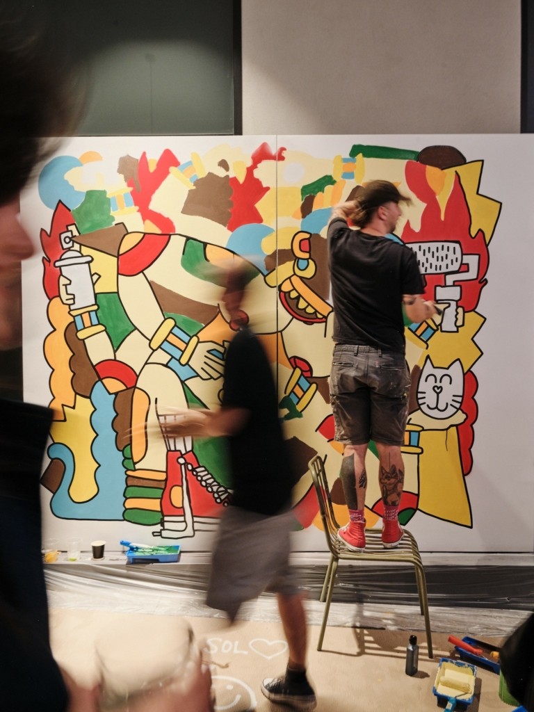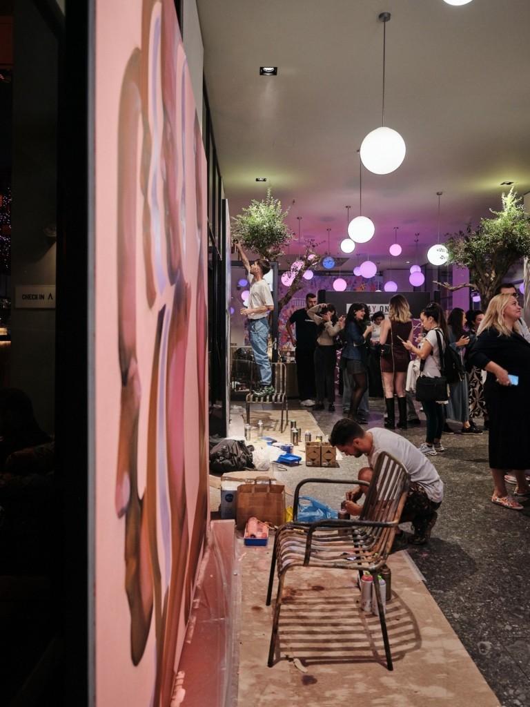 Το κοινό είχε τη δυνατότητα να απολαύσει τη διαδικασία του live painting, με τους καλλιτέχνες να εξηγούν τα στάδια της δημιουργίας και να μοιράζονται τις σκέψεις τους. Η άμεση αυτή επαφή ενέπνευσε έναν διάλογο για την τέχνη και τη δημιουργικότητα, δίνοντας στους παρευρισκόμενους μια μοναδική ευκαιρία να συμμετάσχουν ενεργά στην καλλιτεχνική διαδικασία. Παράλληλα, η εκδήλωση πλαισιώθηκε από ζωντανή μουσική και signature Moxy cocktails, που προσέφεραν μια ξεχωριστή γευστική εμπειρία.