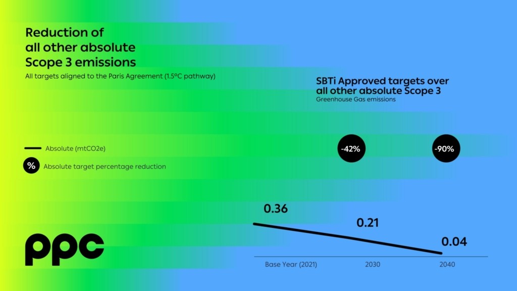 -μείωση 42% των απόλυτων εκπομπών αερίων θερμοκηπίου σε όλες τις υπόλοιπες κατηγορίες του Scope 3.
