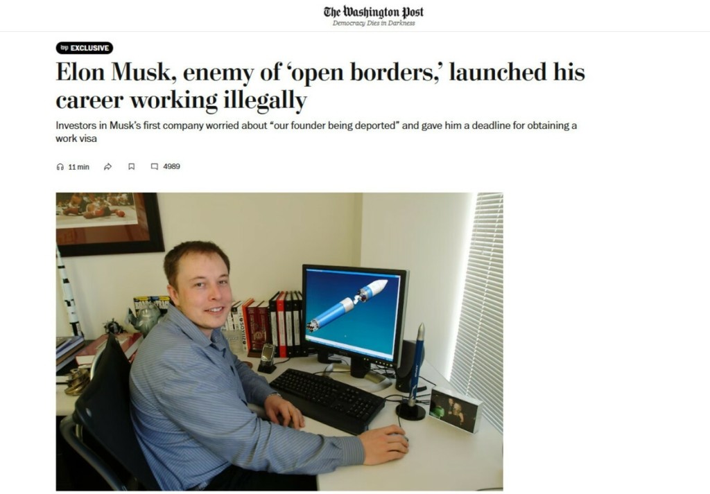 Παράνομα στις ΗΠΑ φαίνεται πως εργαζόταν ο Έλον Μασκ στην αρχή της καριέρας του.