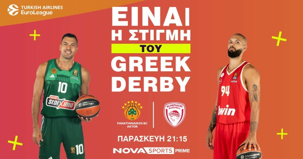 Οι φίλοι του μπάσκετ την Παρασκευή 8 Νοεμβρίου (21:15) θα έχουν την ευκαιρία να απολαύσουν στο Novasports Prime το μεγάλο ντέρμπι της 8ης αγωνιστικής της EuroLeague ανάμεσα στον επτάστερο πρωταθλητή Ευρώπης, Παναθηναϊκό AKTOR και τον ενισχυμένο και φιλόδοξο Ολυμπιακό που θα διεξαχθεί στο κλειστό του ΟΑΚΑ. Από τις 19:30 οι συνδρομητές της Nova θα μπουν στο ρυθμό του αγώνα με την εκπομπή Playmakers με τον Γρηγόρη Παπαβασιλείου με όλα τα τελευταία νέα, ρεπορτάζ, δηλώσεις, καλεσμένους και αναλύσεις.