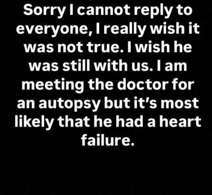 Σύμφωνα με δύο αναρτήσεις στον προσωπικό λογαριασμό του, η πιθανότερη αιτία θανάτου του είναι η ανακοπή καρδιάς.