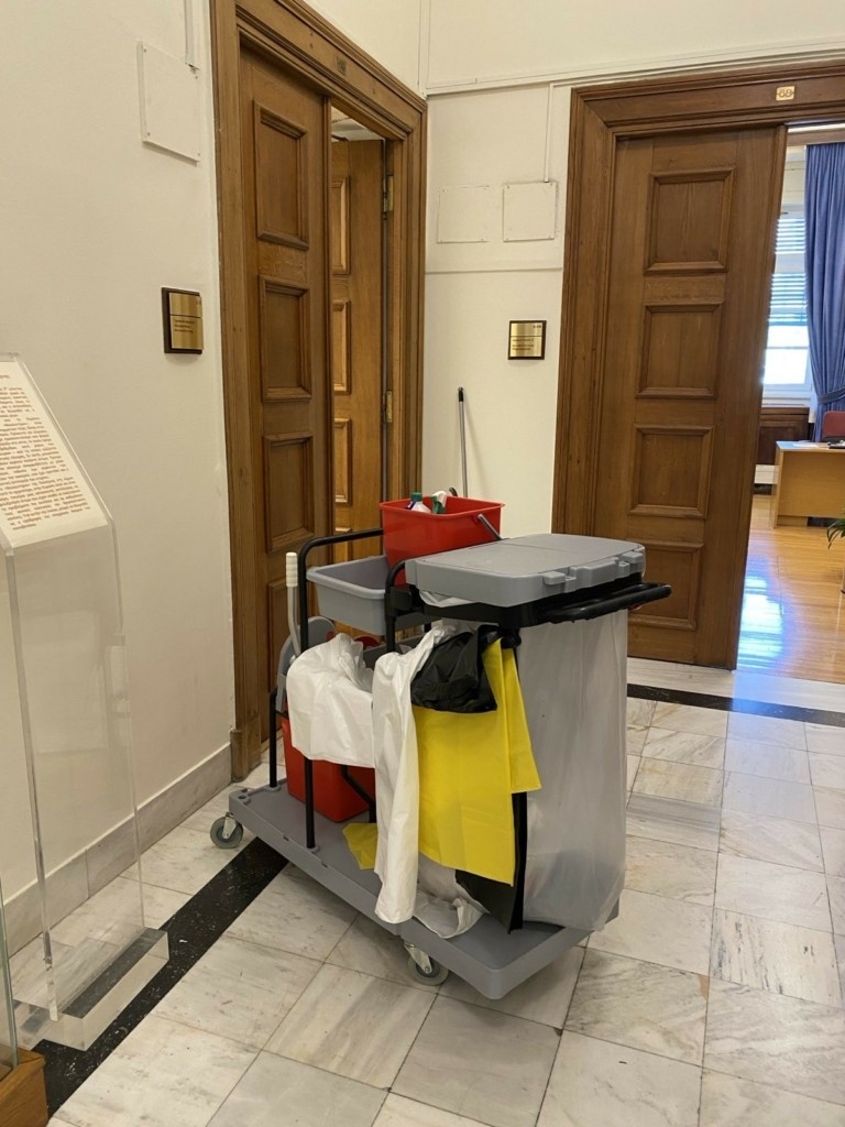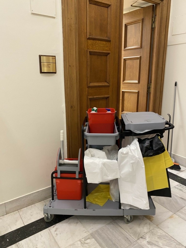 Από το πρωί ανέλαβαν δράση οι υπηρεσίες καθαριότητας ώστε να είναι όλα πεντακάθαρα όταν ο νέος ένοικος εγκατασταθεί.