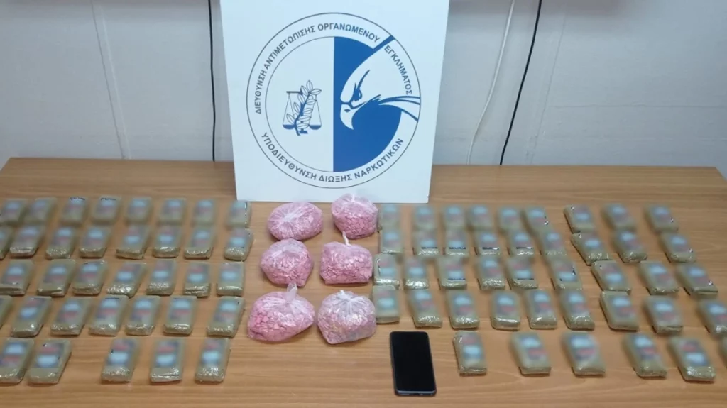 Ειδικότερα, κατελήφθη να κατέχει κατεργασμένη κάνναβη (σοκολάτα) συνολικού μικτού βάρους 7 κιλών και 840 γραμμαρίων, καθώς και 4.770 περίπου δισκία «ECSTASY», τα οποία ήταν επιμελώς κρυμμένα σε διάφορα είδη ρουχισμού και υποδημάτων εντός αποσκευής. Επιπλέον, κατασχέθηκε και μια συσκευή κινητής τηλεφωνίας.