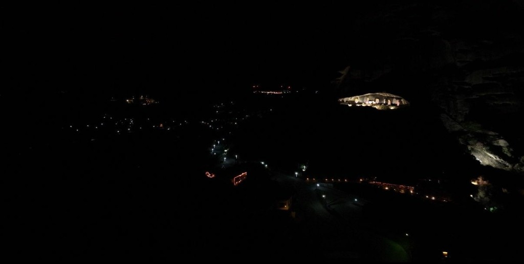 Κατά τις βραδινές ώρες ο φωτισμός κάνει τη φάτνη να κερδίζει τις εντυπώσεις καθώς είναι λιτή, χωρίς περιττά στολίδια και εναρμονίζεται με τους Ιερούς Βράχους των Μετεώρων, στην δεύτερη μεγαλύτερη μοναστική κοινότητα της χώρας.