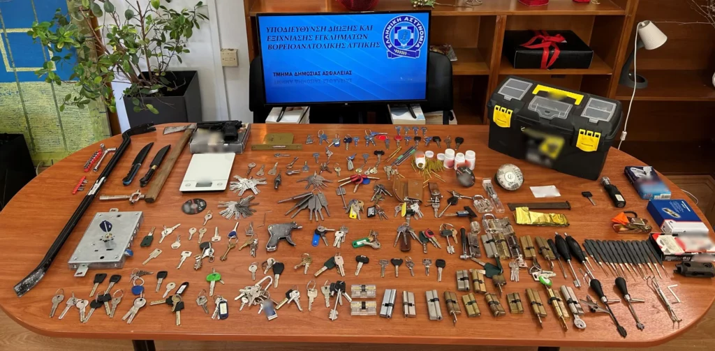 • πλήθος διαρρηκτικών εργαλείων και κλειδιών,