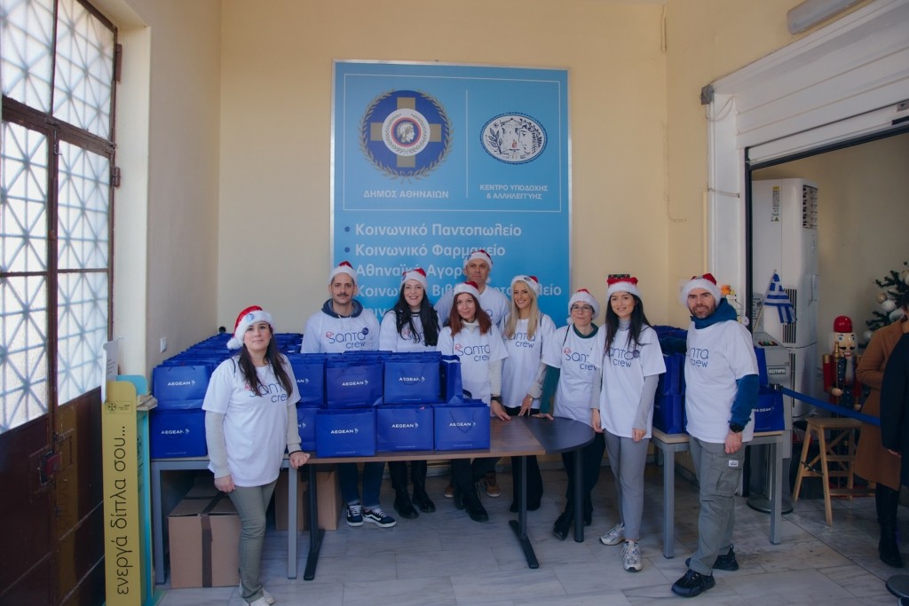 Να σημειωθεί ότι νωρίτερα, την ίδια εβδομάδα τα μέλη του «AEGEAN Santa Crew» επισκέφθηκαν το Κέντρο Υποδοχής και Αλληλεγγύης του Δήμου Αθηναίων (Κ.Υ.Α.Δ.Α.) και το Πολυδύναμο Κέντρο Αστέγων προσφέροντας χριστουγεννιάτικα γλυκίσματα σε 300 οικογένειες, που ζουν κάτω από τα όρια της φτώχειας και σε 200 συνανθρώπους μας, που αντιμετωπίζουν συνθήκες αστεγίας, μοιράζοντας στιγμές ζεστασιάς και χαράς.