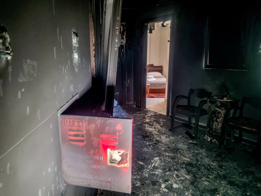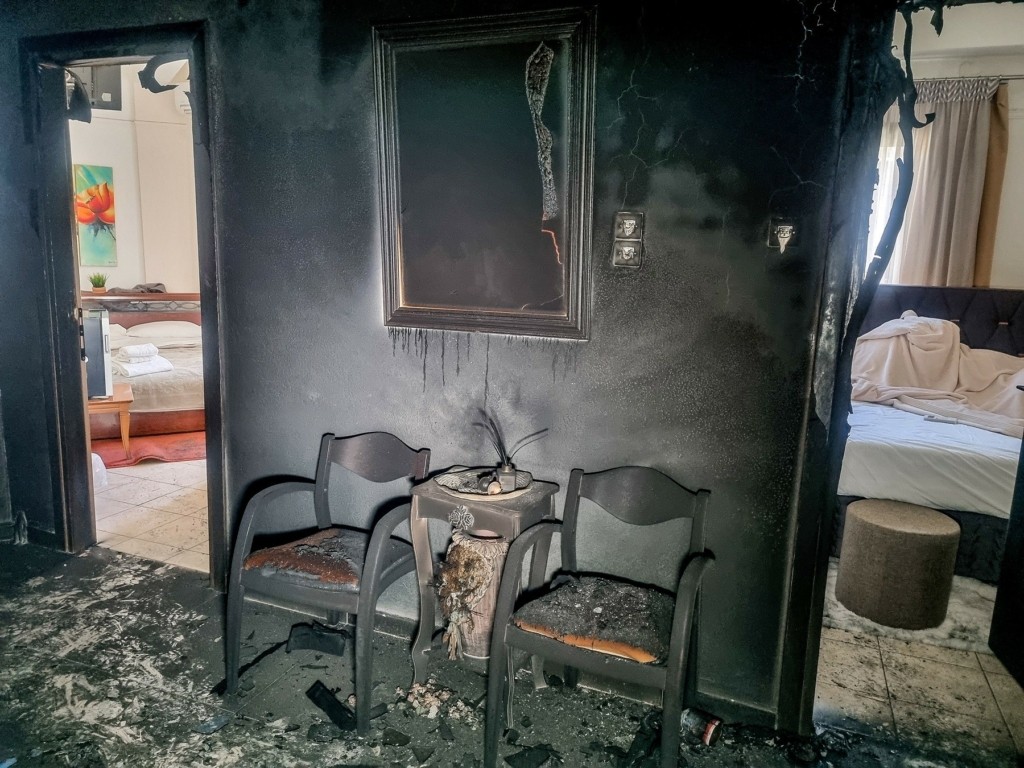 Νεκρός είναι ο 55χρονος ιδιοκτήτης του καταλύματος που πήδηξε από το μπαλκόνι του 1ου ορόφου, για να γλιτώσει από τις φλόγες.