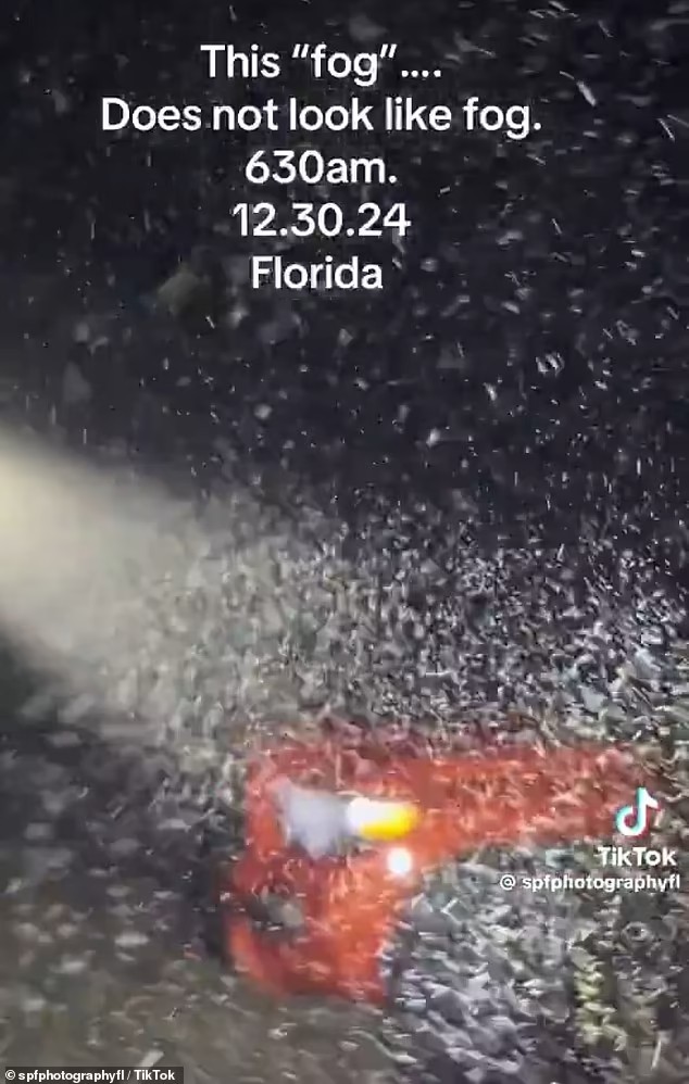 Ο David Bamber, από την Φλόριντα, μοιράστηκε ένα βίντεο στο TikTok με τον εαυτό του να περπατά μέσα στην πυκνή ομίχλη, εξηγώντας ότι η κανονική ομίχλη συνήθως εξαφανίζεται αργότερα μέσα στην ημέρα, ενώ αυτή παραμένει όλη τη νύχτα.