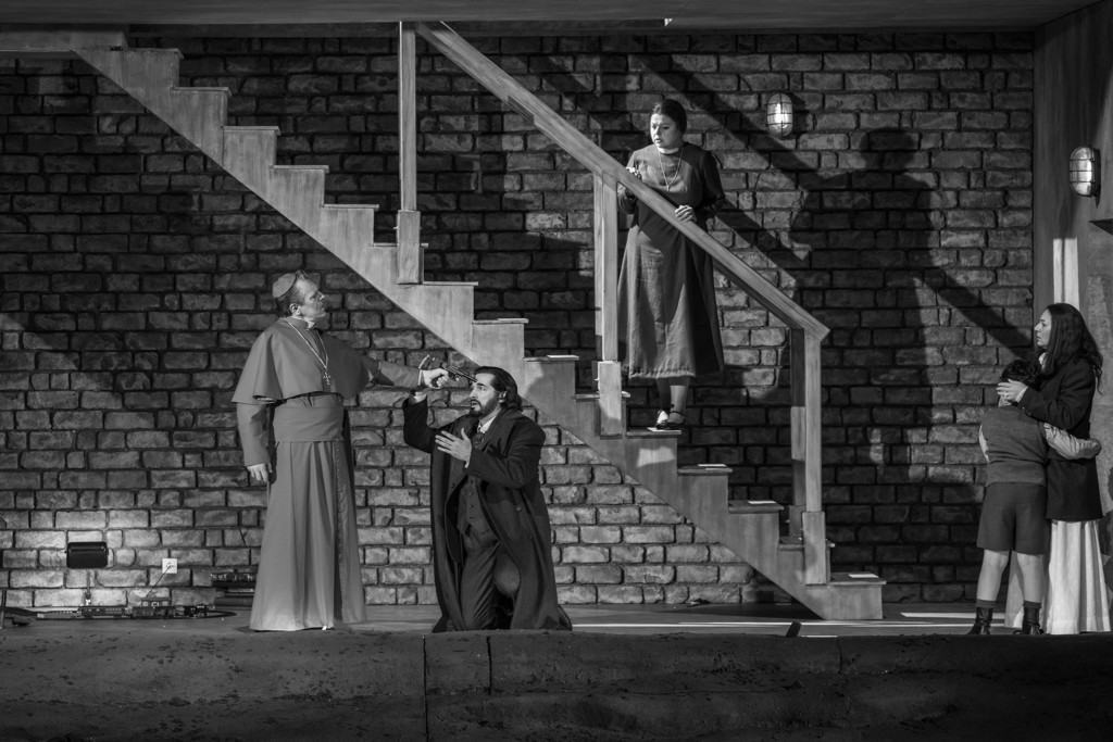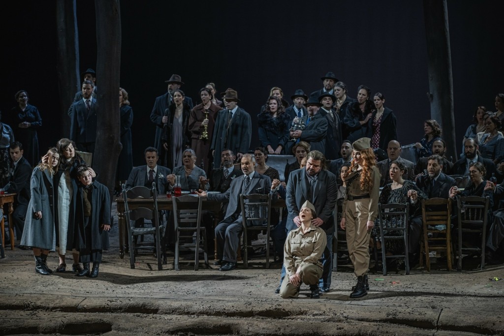 Η Γαϊτάνου, με τη συνδρομή της δημιουργικής της ομάδας, επιλέγει να τοποθετήσει τη δράση του έργου στις αρχές του 20ού αιώνα με αναφορές στουςδύοΠαγκοσμίους Πολέμους, καθώς η ιστορία των ηρώων του έργου κινείται παράλληλα με την εξέλιξη του πολέμου. Κινούμενη στην αισθητική του κιαροσκούρο η παράσταση –άλλοτε στο φως και άλλοτε στη σκιά– κρατάει τον αναγκαίο για το έργο ρεαλισμό, ενώ μέσω των συμβολισμών χαρακτηρίζεται από ποιητική ελευθερία. Η έννοια του «πεπρωμένου» επιχειρείται να ερμηνευτεί σκηνικά μέσα από την ανάδειξη της αποτρόπαιης φύσης του πολέμου και της δραματικής επίδρασής του στους ανθρώπους, καθώς και μέσα από αναφορές σε έργα του Θόδωρου Αγγελόπουλου, του Μιχαήλ Άγγελου και του Ιερώνυμου Μπος.