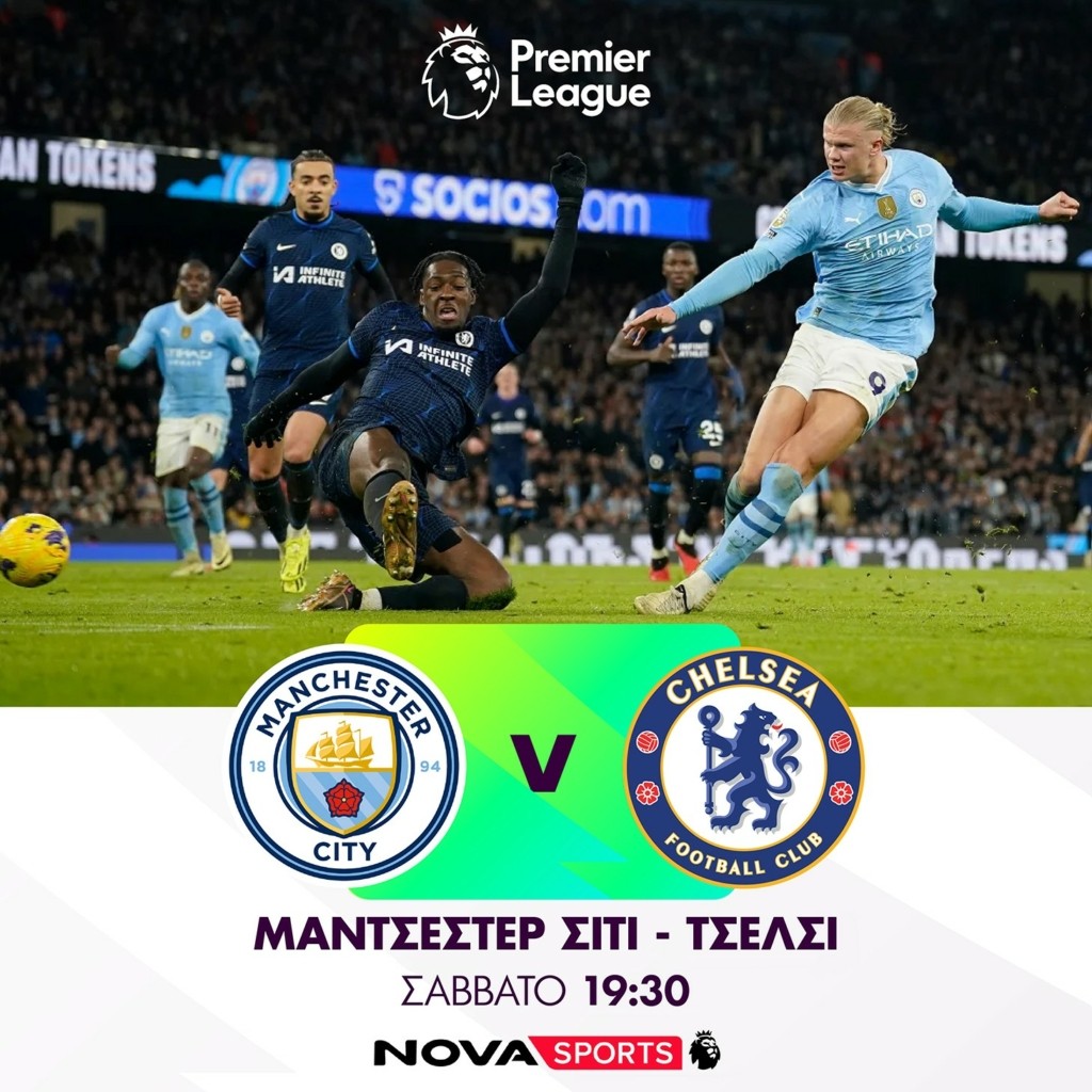 19:30 Premier League: Μάντσεστερ Σίτι-Τσέλσι Novasports Premier League σε περιγραφή του Χρήστου Σωτηρακόπουλου