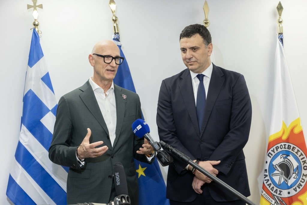Στο Υπουργείο Κλιματικής Κρίσης και Πολιτικής Προστασίας βρέθηκε, στη συνέχεια, ο κ. Höttges. Παρουσία του Υπουργού, κ. Βασίλη Κικίλια, καθώς και της κα Leroy και του κ. Νεμπή, πραγματοποιήθηκε παρουσίαση του 112 και του πληροφοριακού συστήματος ENGAGE, έργα που έχει υλοποιήσει ο Όμιλος ΟΤΕ, ο οποίος ανέλαβε πρόσφατα και την αναβάθμισή τους.