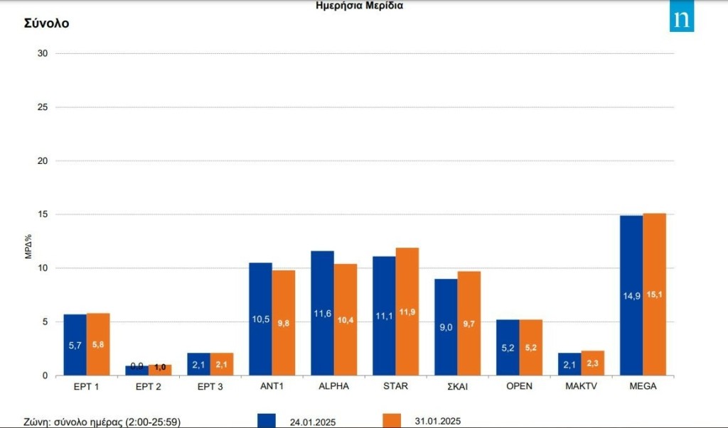 To Star με ανεβασμένη επίδοση, συγκριτικά με τις τρείς προηγούμενες ημέρες, ήταν δεύτερη επιλογή των τηλεθεατών, με τρίτο τον Alpha, τέταρτο τον ΑΝΤ1 ο οποίος «απειλήθηκε» από τον ΣΚΑΪ.