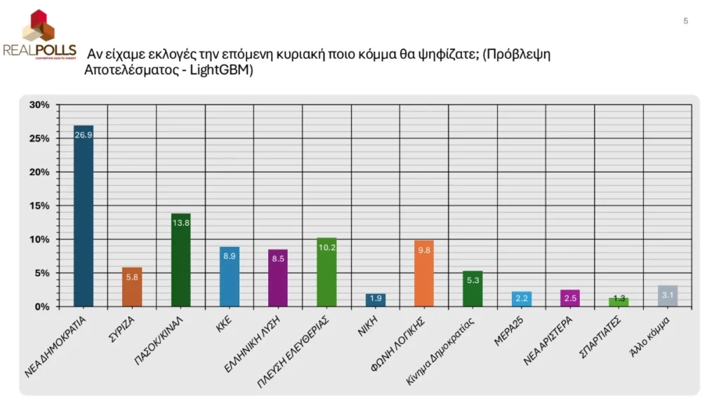 Και εμφανίζει επίσης τους Σπαρτιάτες με 1,9%, ενώ το πραγματικό στο γκάλοπ είναι 1,3%.