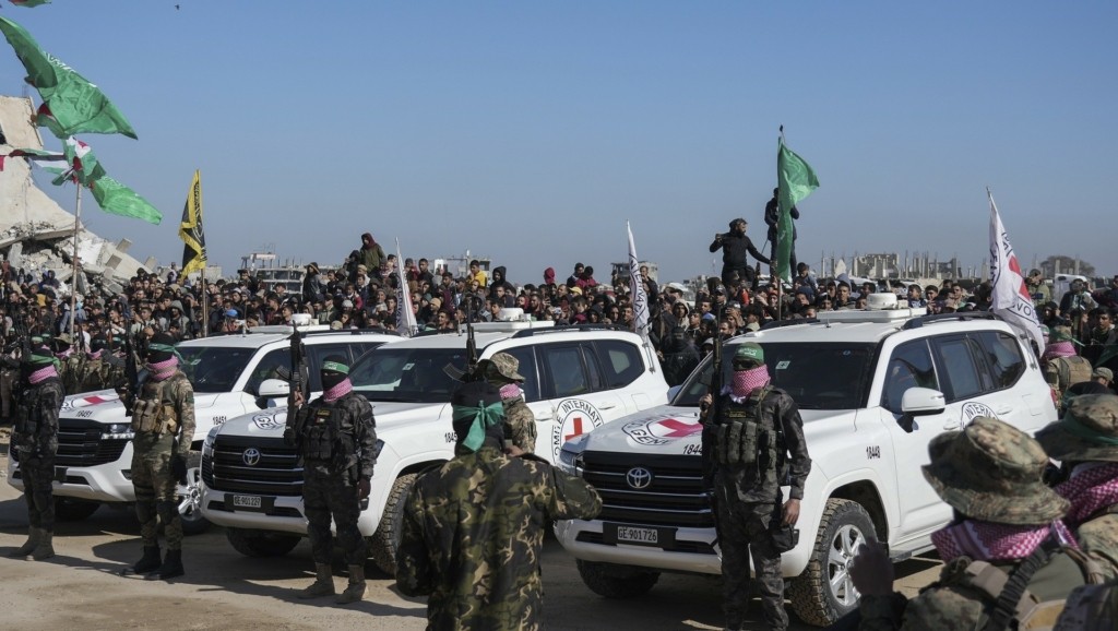 Ύστερα από σχεδόν 500 ημέρες ομηρείας, ο ρωσοϊσραηλινός Σάσα Τρουφάνοφ, 29 ετών, ο αμερικανοϊσραηλινός Σαγκί Ντέκελ-Χεν, 36 ετών και ο αργεντινοϊσραηλινός Ιαΐρ Χορν, 46 ετών, οδηγήθηκαν αρχικά σε εξέδρα που είχε στηθεί στη Χαν Γιούνις, περιτριγυρισμένοι από ένοπλους μαχητές, με καλυμμένα πρόσωπα, της Χαμάς και του συμμάχου της, του Ισλαμικού Τζιχάντ.