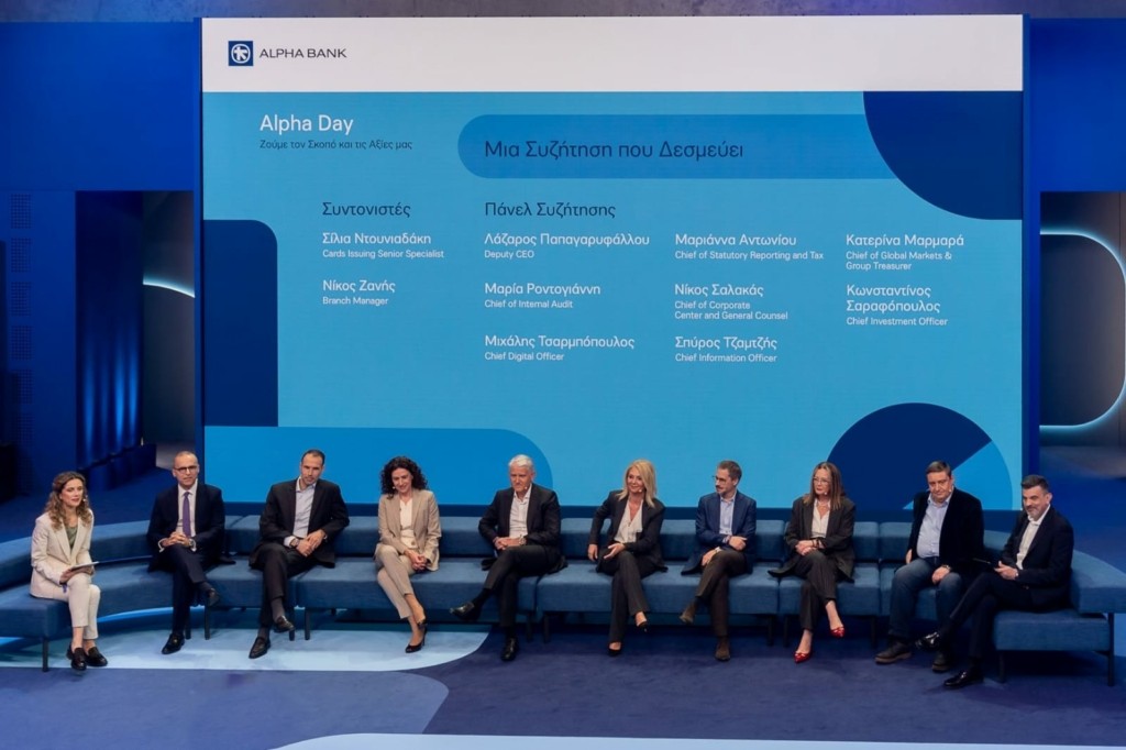 Η εκδήλωση συνδύασε τον γόνιμο προβληματισμό και την αποφασιστικότητα με τον ενθουσιασμό και αποτέλεσε την επίσημη παρουσίαση του νέου εταιρικού σκοπού του Ομίλου Alpha Bank και των αξιών που τον συνοδεύουν.