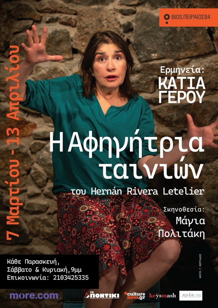 Στη σκηνή του ΒΙΟS από την 7η Μαρτίου, η Κάτια Γέρου αφηγείται τιςπεριπέτειες ενός κοριτσιού, που έχει το σπάνιο χάρισμα να λέει ή μάλλον να ζωντανεύει τις ιστορίες των ταινιών.