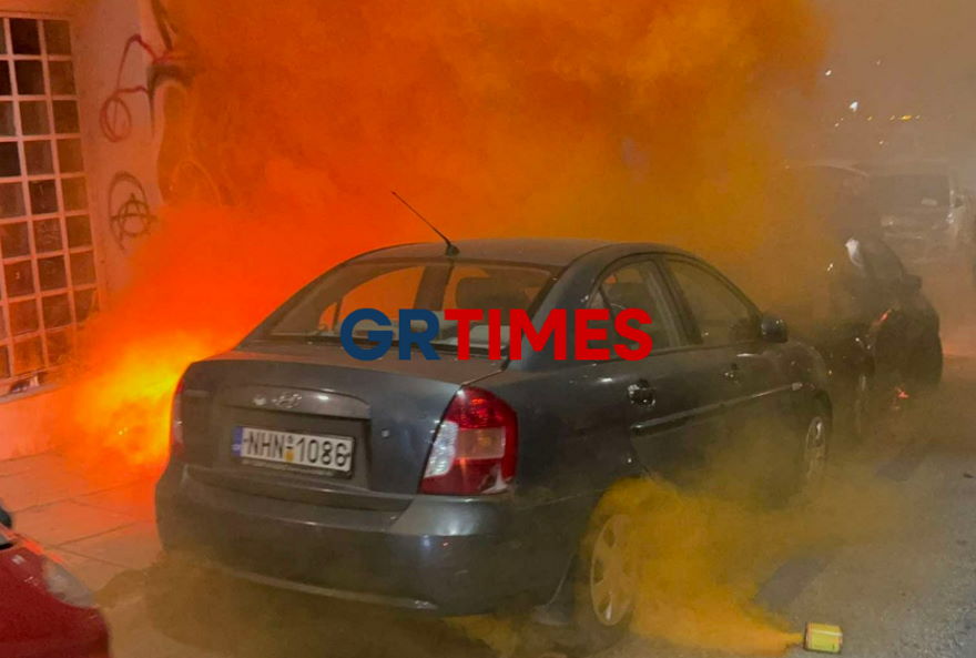 Oμάδα ατόμων με καλυμμένα τα χαρακτηριστικά τα πρόσωπά τους αναποδογύρισαν και έβαλαν φωτιά σε κάδους από την Εγνατία μέχρι την Αγίας Σοφίας, με αποτέλεσμα να επέμβει η Πυροσβεστική.