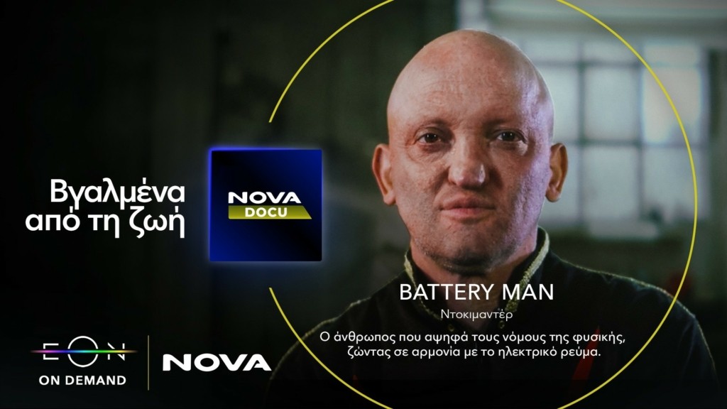 Η Nova, μέλος της United Group του κορυφαίου παρόχου τηλεπικοινωνιών και media στη Νοτιοανατολική Ευρώπη, ανακοινώνει ότι η πλατφόρμα EON, σε συνέχεια της αναβάθμισης και του εμπλουτισμού της εμπειρίας ψυχαγωγίας, προσφέρει στους θεατές ένα νέο κατάλογο On Demand βγαλμένο από τη ζωή. Στο Nova Docu ξεχωρίζουν τα συναρπαστικά ντοκιμαντέρ King Otto, Dolphin Man και Battery Man, καθώς και πολλά άλλα βραβευμένα ντοκιμαντέρ από την Ελλάδα και τον κόσμο.