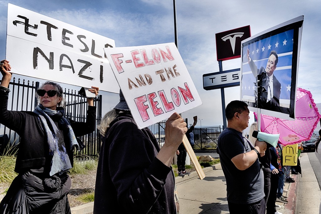 Οι επικριτές του Μασκ έχουν οργανώσει δεκάδες ειρηνικές διαδηλώσεις σε αντιπροσωπείες και εργοστάσια της Tesla σε όλη τη Βόρεια Αμερική και την Ευρώπη. Ορισμένοι ιδιοκτήτες Tesla, συμπεριλαμβανομένου ενός Αμερικανού γερουσιαστή που διαπληκτίστηκε με τον Μασκ, έχουν ορκιστεί να πουλήσουν τα οχήματά τους.
