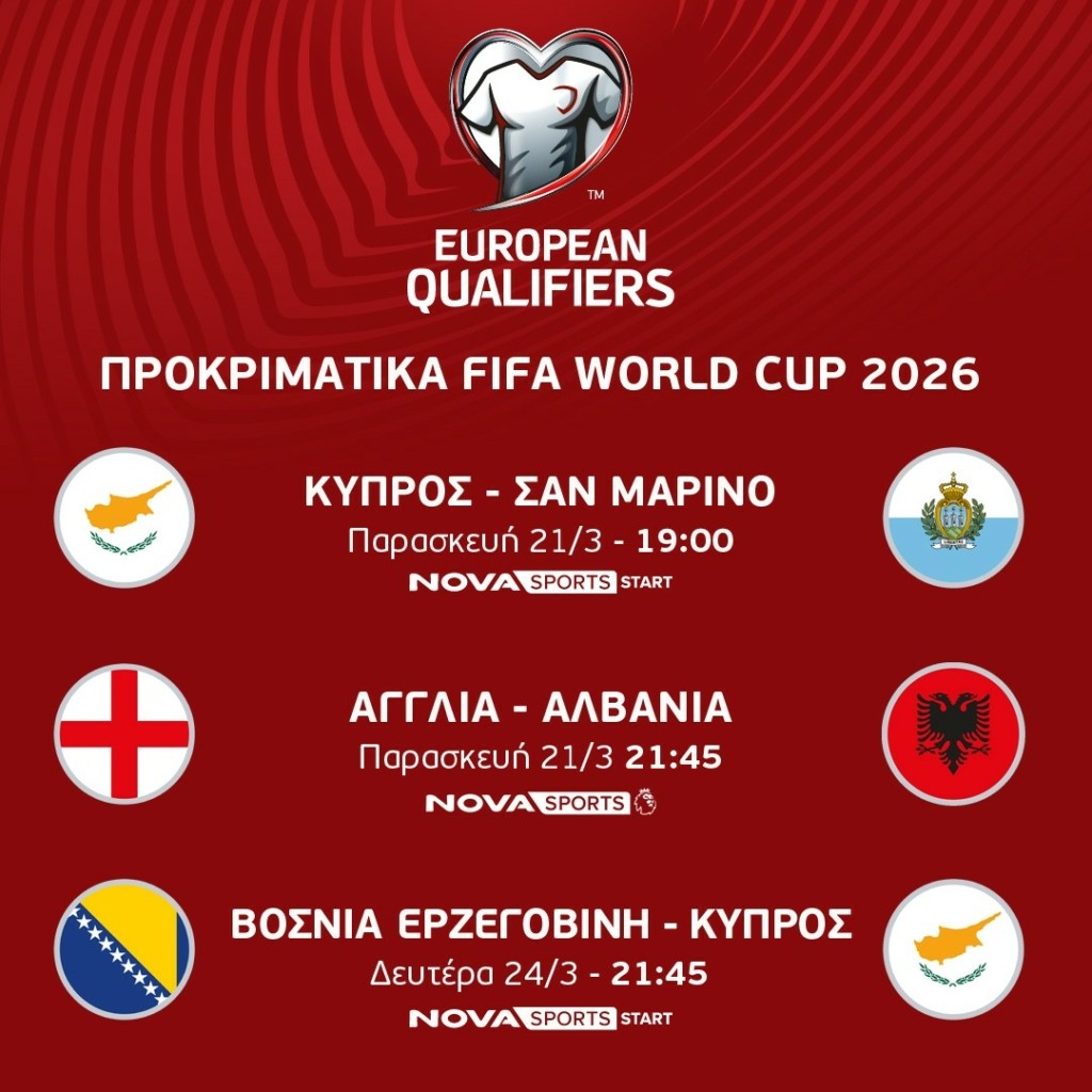 19:00 UEFA European Qualifiers: Κύπρος-Σαν Μαρίνο Novasports Start σε περιγραφή του Άκη Κουζούλη