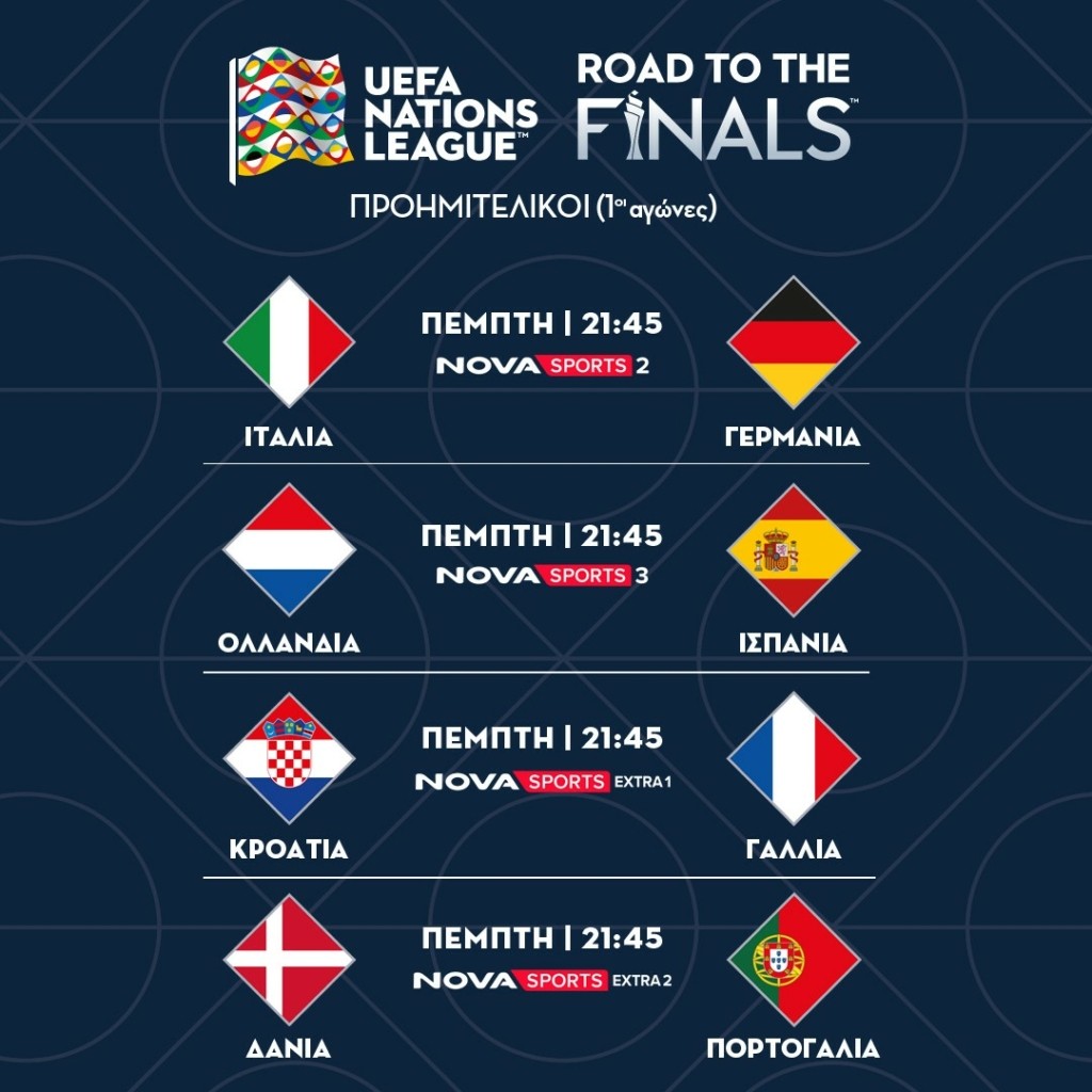 21:45 UEFA Nations League – Προημιτελικός 1ος αγώνας: Κροατία-Γαλλία Novasportsextra1 σε περιγραφή του Ηλία Βλάχου