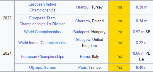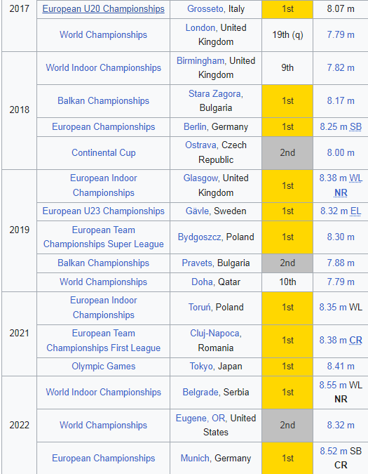 Από τότε, μέτρησε 12 σερί διοργανώσεις με μετάλλια, 11 χρυσά και ένα αργυρό στο Παγκόσμιο του Ορεγκον το 2022!