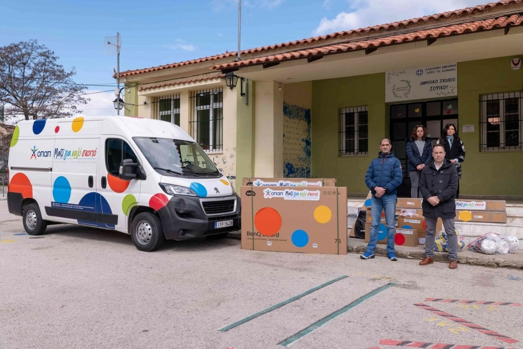 Παράλληλα, το van του προγράμματος «ΜΑΖΙ ΓΙΑ ΚΑΛΟ ΣΚΟΠΟ» επισκέφθηκε το 3ο Δημοτικό Σχολείο Αρτάκης, το 5ο Δημοτικό Σχολείο Νέας Μαγνησίας Λαμίας, το 1ο Δημοτικό Σχολείο Μοσχάτου και το Δημοτικό Σχολείο Σοφικού, παραδίδοντας σχολικό και τεχνολογικό εξοπλισμό (laptops, υπολογιστές, βιντεοπροβολείς, χάρτες τοίχου), αθλητικό υλικό, μουσικά όργανα, καθώς και απινιδωτές.