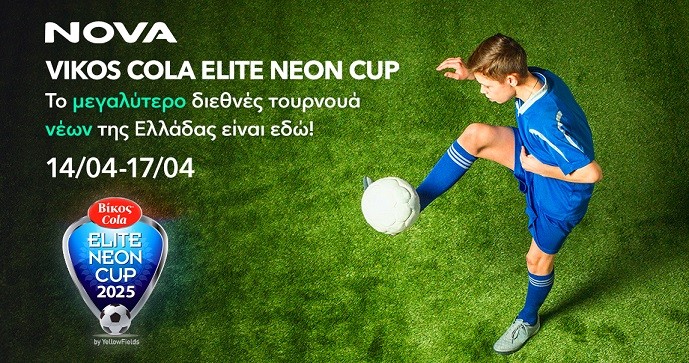 Oι συνδρομητές της Nova θα παρακολουθήσουν στα κανάλια Novasports και πιο συγκεκριμένα στο Novasports Start από τις 14-17 Απριλίου (14:00-18:00 και 14:00-18:30 στις 17/4), επιλεγμένους αγώνες από τη φάση των ομίλων έως και τους τους τελικούς, του Βίκος Cola Elite Neon Cup 2025, του μεγαλύτερου διεθνούς τουρνουά ποδοσφαίρου Νέων (Κ14, Κ16) στην Ελλάδα που διεξάγεται για 11η χρονιάμε τη συμμετοχή κορυφαίων ομάδων από την Ελλάδα και το εξωτερικό και η Nova στηρίζει ως Χορηγός Επικοινωνίας. Συνολικά, 128 γκρουπ από 20 χώρες, θα συναντηθούν σε ένα τουρνουά, στο οποίο θα μας «συστηθούν» μερικοί από τους σταρ του μέλλοντος, αλλά και θρυλικές μορφές του παρελθόντος. Ομάδες όπως οι Ίντερ, Λάτσιο, Στεάουα Βουκουρεστίου, Ερυθρός Αστέρας, Ολυμπιακός, Παναθηναϊκός, ΑΕΚ, ΟΦΗ, Πανιώνιος, Ανόρθωση, Άρης Λεμεσού, ΑΠΟΕΛ και Πάφος, θα δώσουν το «παρών», σε αυτό το μεγάλο «ραντεβού».