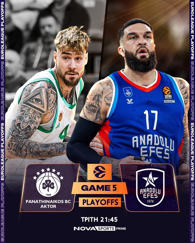 Αθήνα, 5 Μαΐου 2025. Η EuroLeague, η κορυφαία ευρωπαϊκή διασυλλογική διοργάνωση στο χώρο του μπάσκετ που οι φίλοι της πορτοκαλί μπάλας απολαμβάνουν αποκλειστικά στο παρκέ του Novasports με την κορυφαία δημοσιογραφική ομάδα των Playmakers, φτάνει στο αποκορύφωμα της αυτή την εβδομάδα με τα συναρπαστικά Playoffs! Το ενδιαφέρον στρέφεται στην προσπάθεια του επτάστερου πρωταθλητή Ευρώπης Παναθηναϊκού AKTOR να εξασφαλίσει το εισιτήριο για το Final Four του Άμπου Ντάμπι.