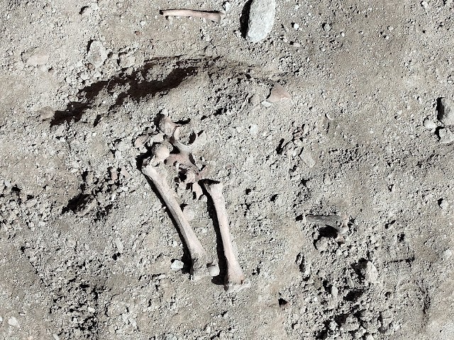 Στο μεταξύ το εργοτάξιο συνεχίζει τις εργασίες, με πάντα ανοιχτή την πιθανότητα ανεύρεσης κι άλλων ανθρώπινων σκελετών. Στα κάγκελά του υπάρχουν μερικά κόκκινα γαρύφαλα και ένα στεφάνι για τις γυναίκες που εκτελέσθηκαν εκεί. Ο Σπύρος Κουζινόπουλος μας τις προσδιορίζει αριθμητικά σε δεκαοκτώ, σύμφωνα με την ερευνά του.
