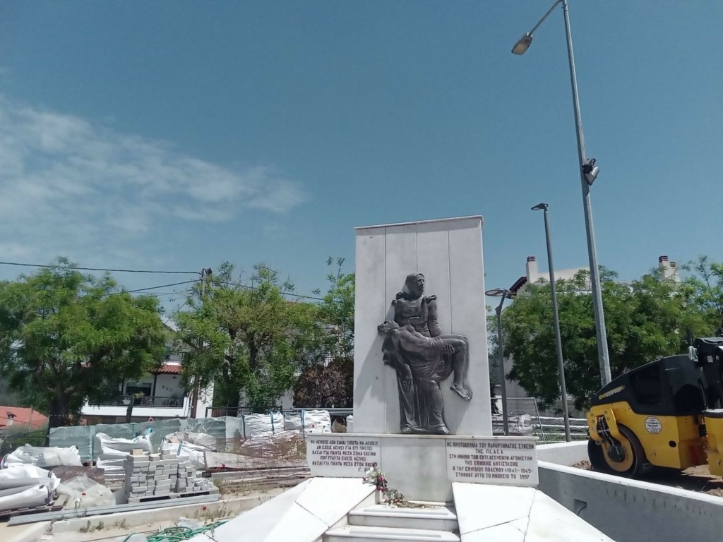 Από το 1997 βρισκόταν στην κορυφή αυτής της «χθαμαλής πλαγιάς» ένα μνημείο για τους πεσόντες της Εθνικής Αντίστασης. Από τα χρόνια του προηγούμενου δημάρχου Αφαλή ακόμη είχε αρχίσει η διαμόρφωση του χώρου σε πάρκο Εθνικής Αντίστασης, έργο το οποίο παρέμεινε ημιτελές, εξού και το «εγκαταλελειμένο εργοτάξιο». Την πρόταση για την επιλογή της συγκεκριμένης έκτασης την έκανε ο παλιός αγωνιστής Μητσόπουλος, μέλος της ΠΕΕΑ (Πανελλήνια Ένωση Εθνικής Αντίστασης). Είχε χάσει τον αδελφό του σε εκτέλεση και στην αναζήτηση του τόπου συναντήθηκε με τον παπά ο οποίος παρίστατο στην εκτέλεση και του υπέδειξε το χώρο.
