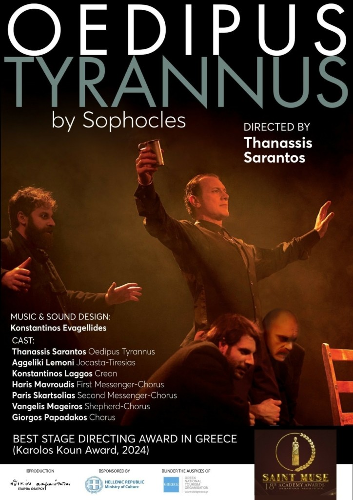 Η βραβευμένη παράσταση «Οιδίπους Τύραννος» του Σοφοκλή σε σκηνοθεσία-ερμηνεία Θανάση Σαράντου θα παρουσιαστεί στις 22 Μαΐου στο 18o Διεθνές Διαγωνιστικό Φεστιβάλ Θεάτρου Saint Muse στο Ulaanbaatar της Μογγολίας.