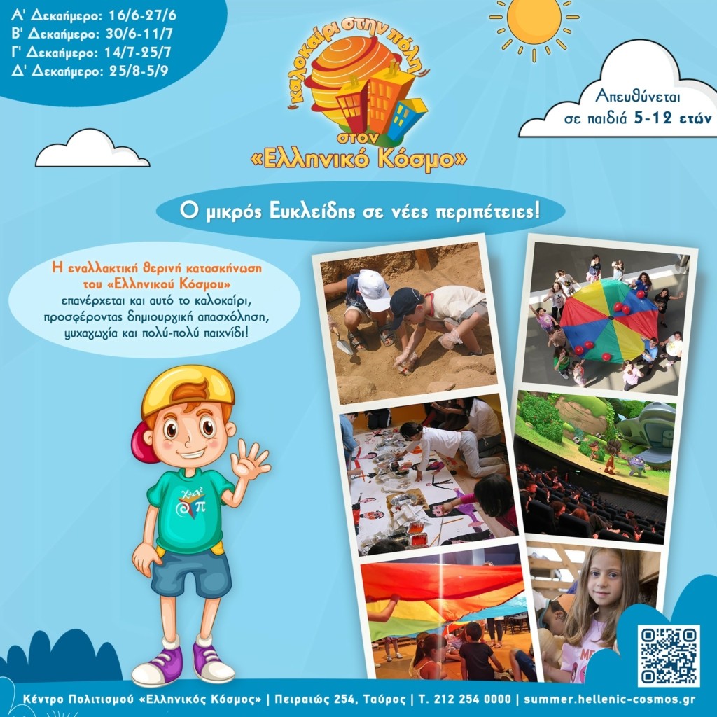 Η εναλλακτική θερινή κατασκήνωση του «Ελληνικού Κόσμου», «Καλοκαίρι στην Πόλη», επανέρχεται και αυτό το καλοκαίρι, προσφέροντας δημιουργική απασχόληση, ψυχαγωγία και πολύ-πολύ παιχνίδι καθ’ όλη τη διάρκεια του καλοκαιριού!
